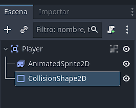 Antes de añadir un cualquier nodo hijo a Player , vamos a garantizar de que no lo vamos a mover o re-dimensionamos acidentalmente haciendo clic sobre los nodos hijos. Selecionando el nodo raiz y haciendo clic al lado derecho del candadito; su tooltip dice “Agrupar Nodo(s) Selecionado(s) (Ctrl + G)”