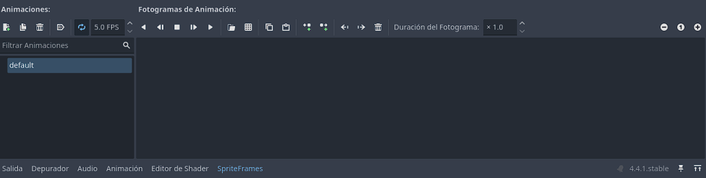 Haz clic en Nuevo SpriteFrames que se acaba de crear y va abrir el panel de SpriteFrames , si lo creas y no te aparece solo dale clic en el que acabas de crear y te va aparecer el panel.