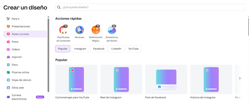 Canva es una plataforma de diseño gráfico en línea que permite crear publicaciones para redes sociales, presentaciones, historias, reels, flyers y mucho más, usando plantillas prediseñadas y una interfaz muy intuitiva.